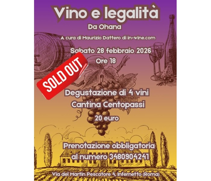 Degustazione "Vino e Legalità" 28/02/2026 - Vini Centopassi - Ohana Bar Bistrot