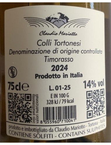 TIMORASSO DERTHONA COLLI TORTONESI DOC 2024 -CLAUDIO MARIOTTO
