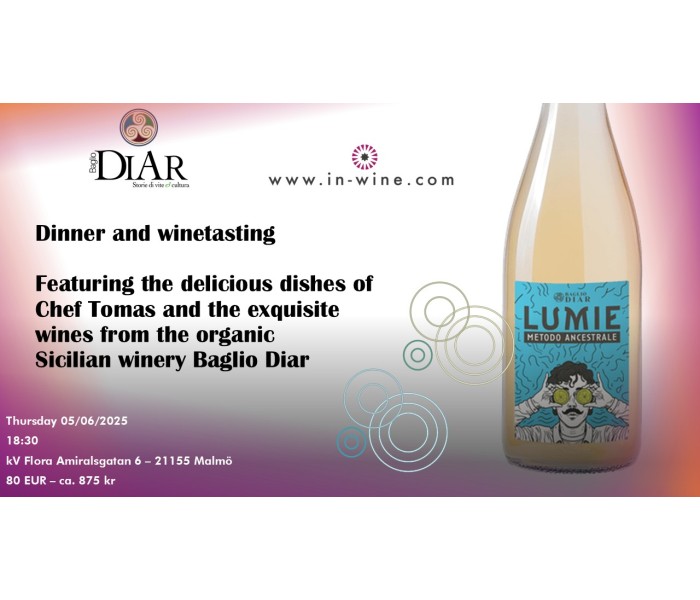 I vini di Baglio Diar saranno al centro dell'evento del 5 giugno al kV Flora di Malmoe.