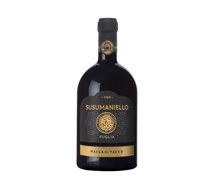 È un vino che cresce su terreni rossi ricchi di ferro su fondo calcareo sferzati dal vento marino. In seguito alla fermentazione il Susumaniello di Masca del Tacco affina in un sapiente mix di acciaio e botti di legno.