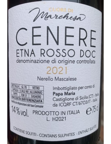 La vinificazione è solo in acciaio e preserva il frutto delle uve: ciliegia e lampone al naso, accompagnate dalle tipiche note minerali di cui il terreno dell'Etna è ricco.