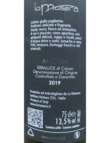 Alla fine il Macaria è un Erbaluce classico, ricco ed evoluto con sentori erbacei, lievemente fruttati e gradevolmente minerali.