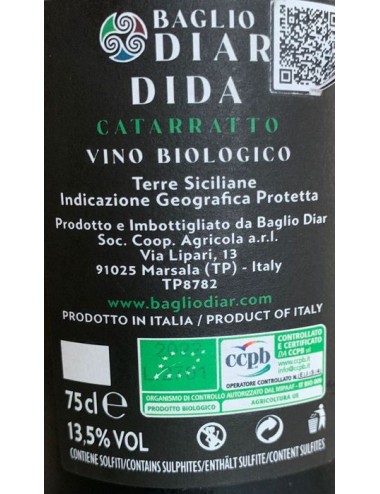 Come tutti i vini di Baglio Diar è certificato biologico, quindi privo di pesticidi e diserbanti: una scelta che ha contraddistinto la cantina siciliana fin dal primo momento e che in questa bottiglia trova espressione di grande carattere.