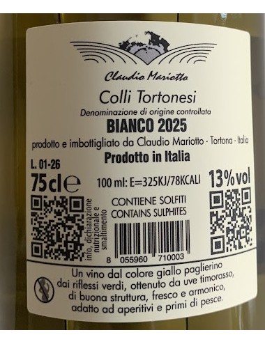 In attesa che l'iter di approvazione della denominazione faccia il suo (lungo) corso e consenta l'introduzione di un Colli Tortonesi con tempi di invecchiamento più brevi rispetto a quelli richiesti per il Derthona, Claudio Mariotto ha scelto di imbottigliare il Piccolo Derthona come vino da tavola.
