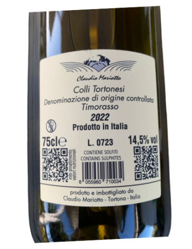 TIMORASSO "CAVALLINA" DERTHONA COLLI TORTONESI DOC 2022 - CLAUDIO MARIOTTO
