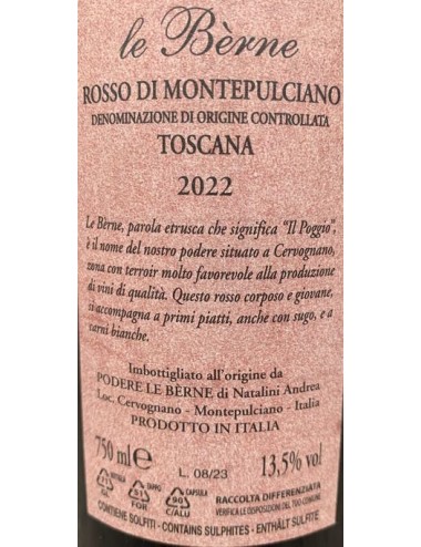 Le Bèrne, la cantina artigianale di Andrea Natalini, produce questo Rosso partendo da vigne un po' più giovani rispetto a quelle usate per il Nobile ma che ricevono le stesse cure del "fratello" più grande.