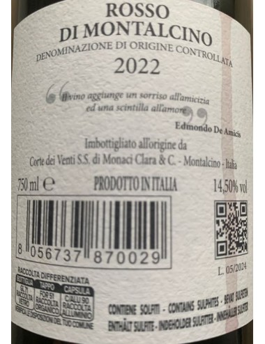 Dalle argille rosse del versante sud-est della Denominazione del Brunello arriva il Rosso di Montalcino della cantina Corte dei Venti.